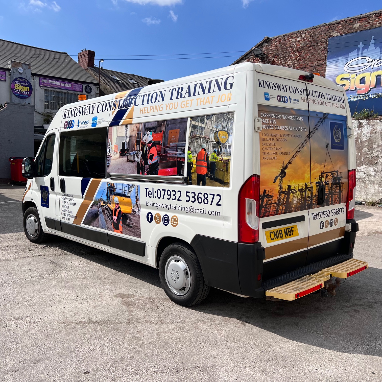 Gold and navy vinyl's and site photographs from Kingsway on printed vinyl's fitted to this van for Kingsway Construction.