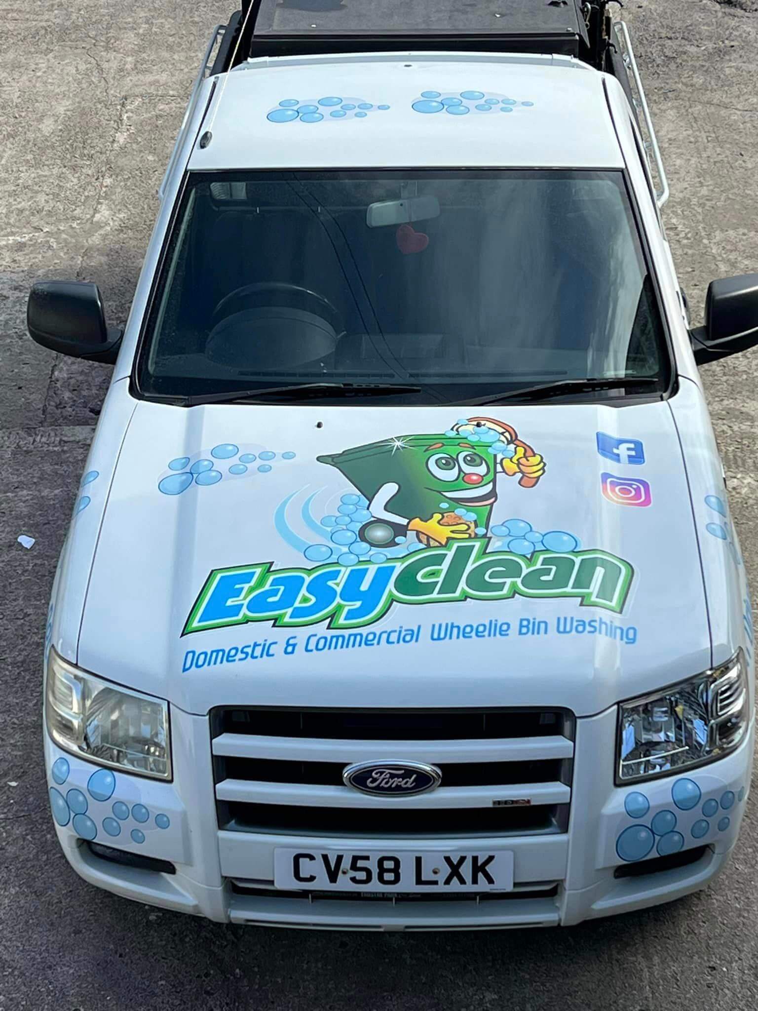 Vinyl prints fitted to panels on a Ford Transit Custom with customers name and logo. vinyl text on back and...